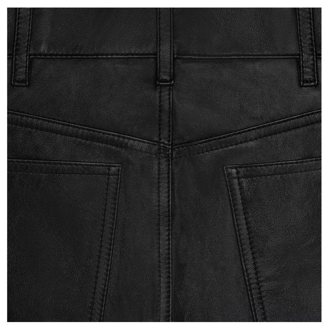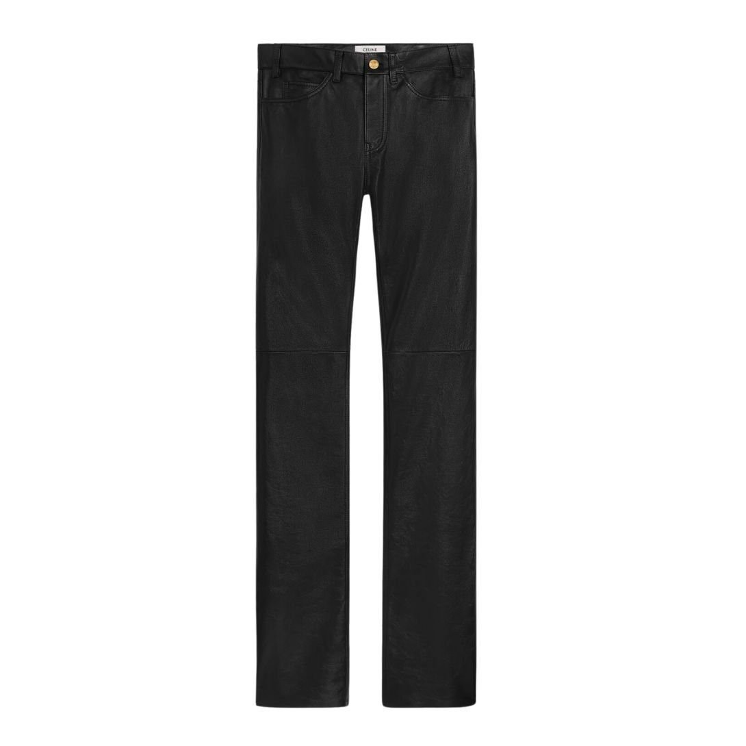 Crafted from 100% lambskin, these Celine Françoise Jeans in Soft Lambskin offer a smooth, supple texture with a refined finish. The 100% silk lining ensures exceptional comfort and a soft feel against the skin.