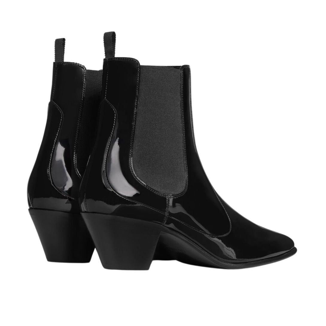 Crafted from 100% premium calfskin, these Celine Hector Chelsea Boot in Patent Calfskin feature a 100% goatskin lining, ensuring a soft, supple feel and long-lasting durability. The hand-painted leather outsole reflects CELINE’s signature artisanal touch.