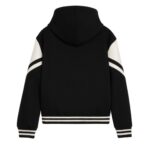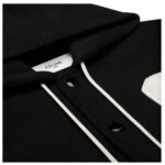 The hood is equipped with an adjustable drawstring, complemented by Celine Paris-engraved metal aglets, adding an element of refinement. Contrasting leather panels on the sleeves and pockets create a striking visual contrast, elevating the design with a modern and sophisticated touch. Two diagonal welt pockets provide practicality while maintaining a sleek appearance.