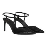 Designed for elegance and sophistication, these Celine Kitten Triomphe Strap Pump in Sequins and Calfskin are crafted from a luxurious blend of 50% sequin and 50% calfskin, offering a striking balance of shimmer and smooth, refined leather.