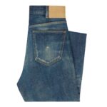 Crafted from 100% cotton, these Celine Kurt Jeans in Destroyed Blue Marble Denim feature a Destroyed Blue Marble Wash, offering a unique, distressed aesthetic with a vintage-inspired fade. The worn-in look, combined with carefully placed holes on the legs, gives them a rugged yet stylish edge.