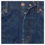 A classic five-pocket design ensures practicality, with rivets on the front pockets reinforcing durability while maintaining an authentic denim aesthetic.