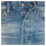 A five-pocket design ensures practicality, with rivets on the front pockets reinforcing durability while enhancing the jeans’ classic aesthetic.