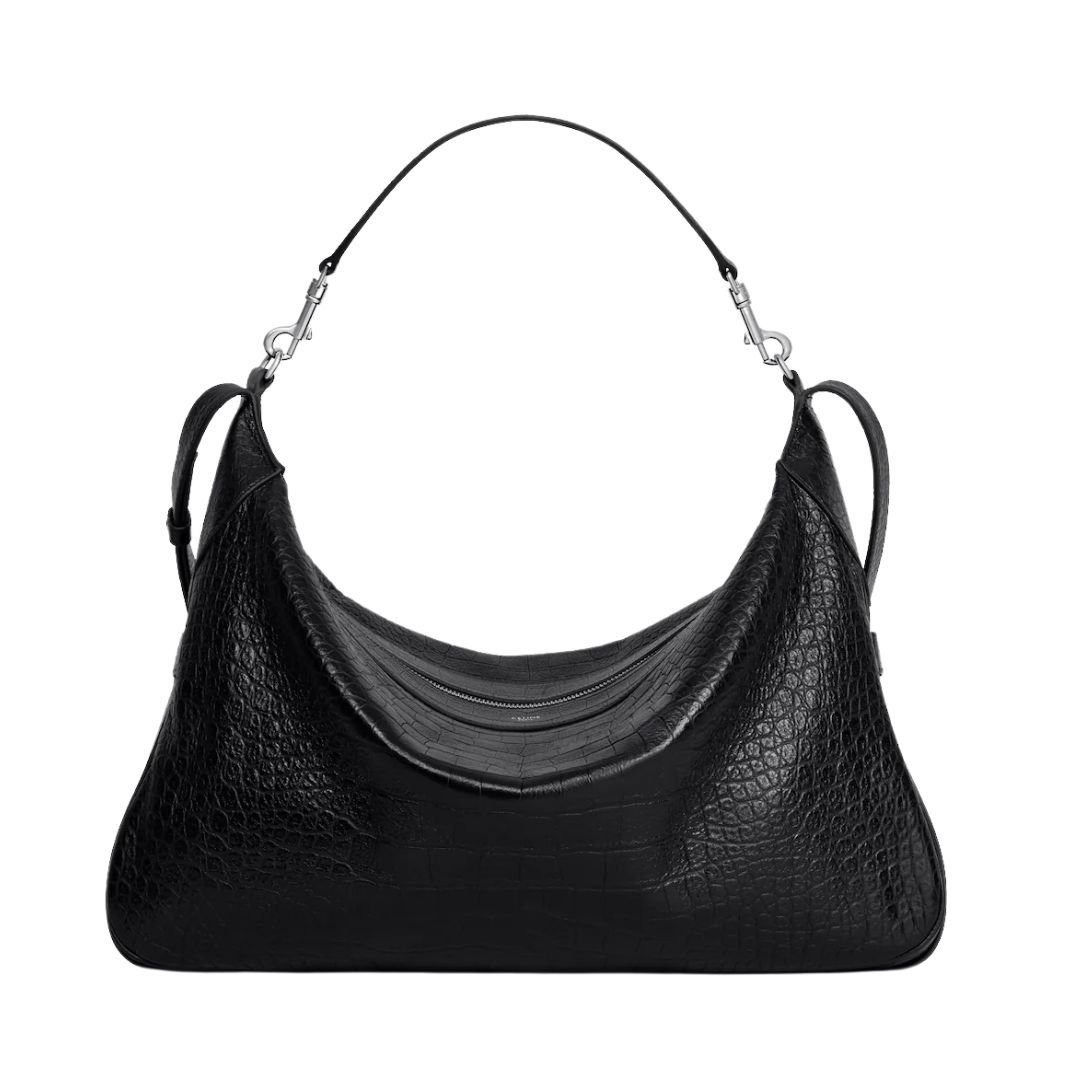 CELINE LARGE STRAP ROMY IN CROCODILE EMBOSSED DEERSKIN BLACK