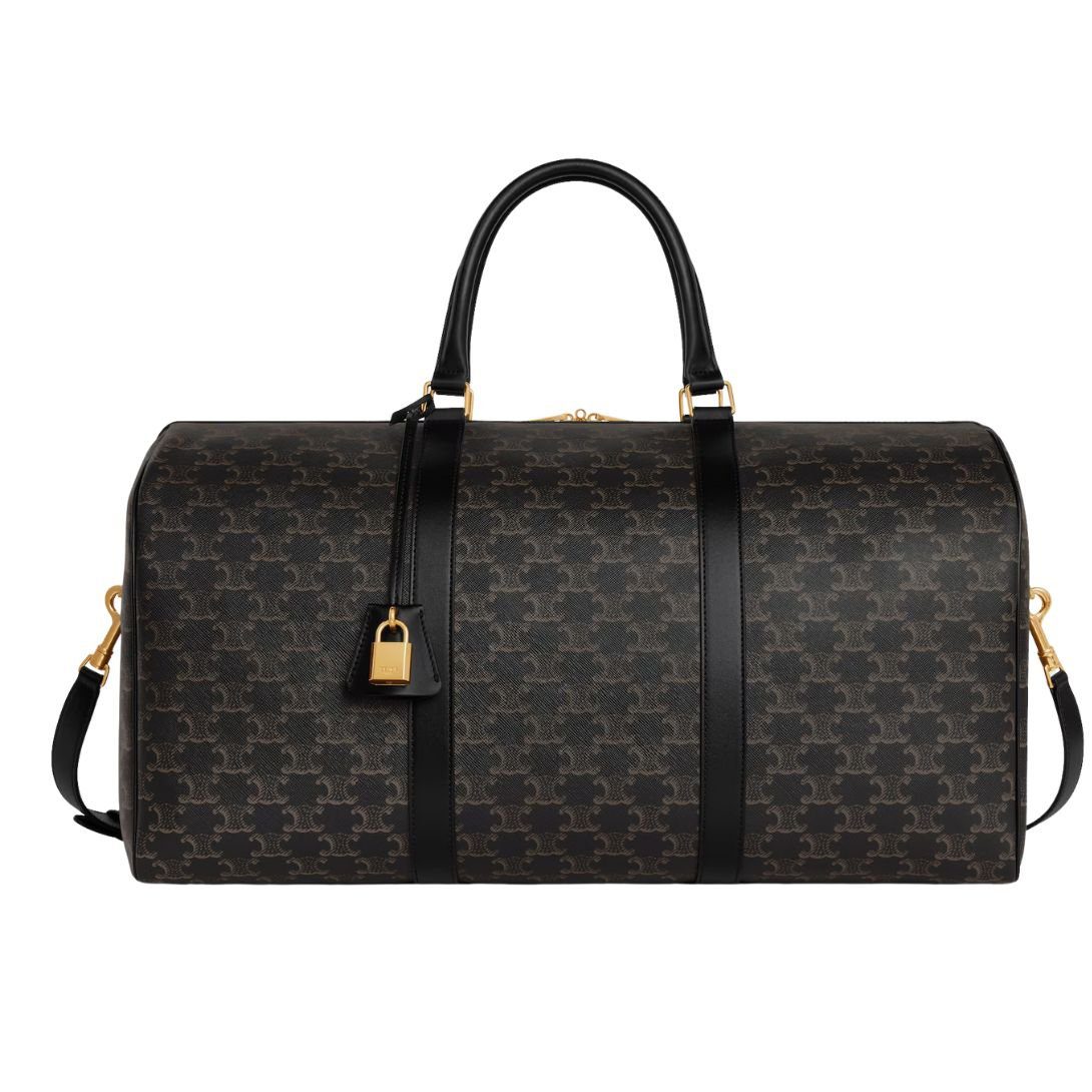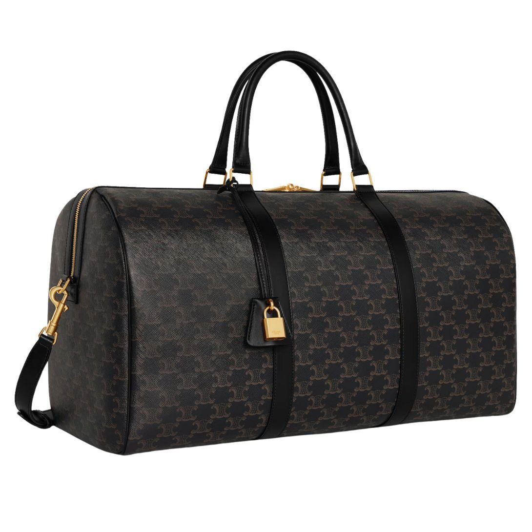 A refined and spacious luxury travel bag, crafted from Triomphe Canvas with calfskin trimmings, offering both durability and timeless elegance.