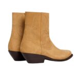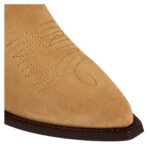 Designed with a pointy toe shape, these boots offer a sleek and elongated silhouette. The 2-inch (50 mm) inclined stacked leather heel adds height while maintaining stability. Inspired by Western aesthetics, decorative stitching enhances the boot’s distinct character.