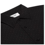 The drugstore collar, reinforced with collar stays, provides a structured and polished look, adding a timeless touch to this versatile piece.