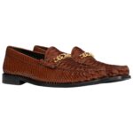 Designed with a round toe shape and traditional loafer construction, these shoes feature a hand-stitched apron for added refinement. The Triomphe chain detail on the apron enhances the design with CELINE’s signature sophistication.