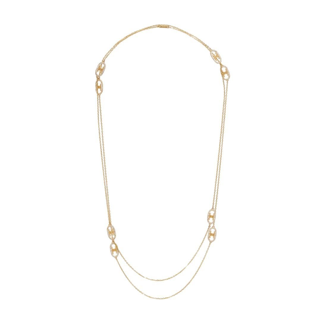 Adorned with 2 carats of brilliant diamonds, this necklace sparkles beautifully, adding an extra layer of luxury and refinement to its timeless design.