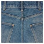 These jeans are elevated with Triomphe gourmette chains at the waist, adding a distinctive Celine touch. Featuring five functional pockets, reinforced rivets on the front pockets, and a Celine jeans-engraved zip and button, they blend practicality with luxury.