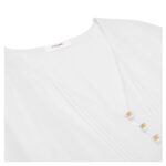 Intricate lace details enhance the design, adding a touch of femininity and refinement. The V-neckline creates a flattering, elongated look while maintaining effortless elegance.