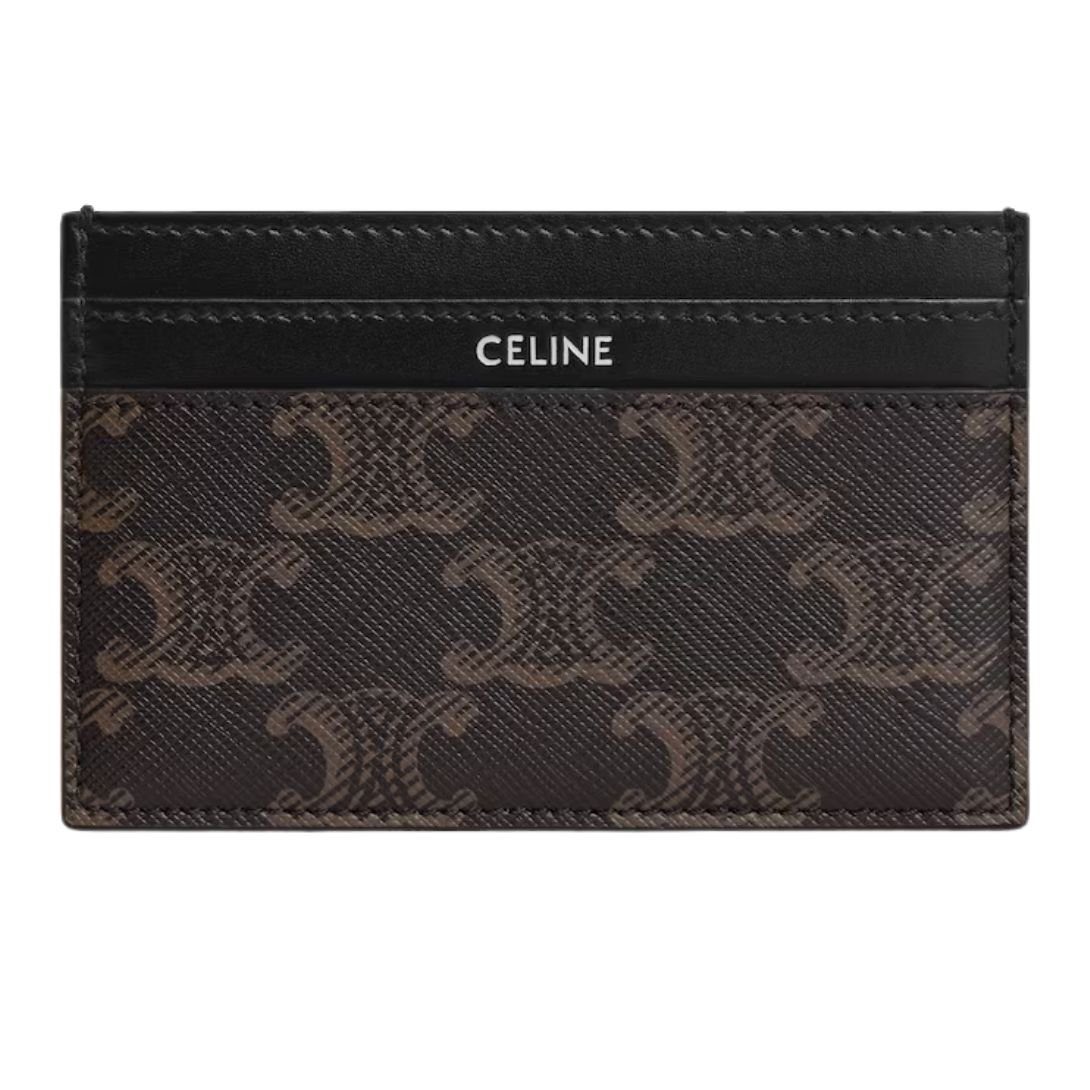 CELINE CARD HOLDER TRIOMPHE IN SHINY CALFSKIN SMOKED BROWN