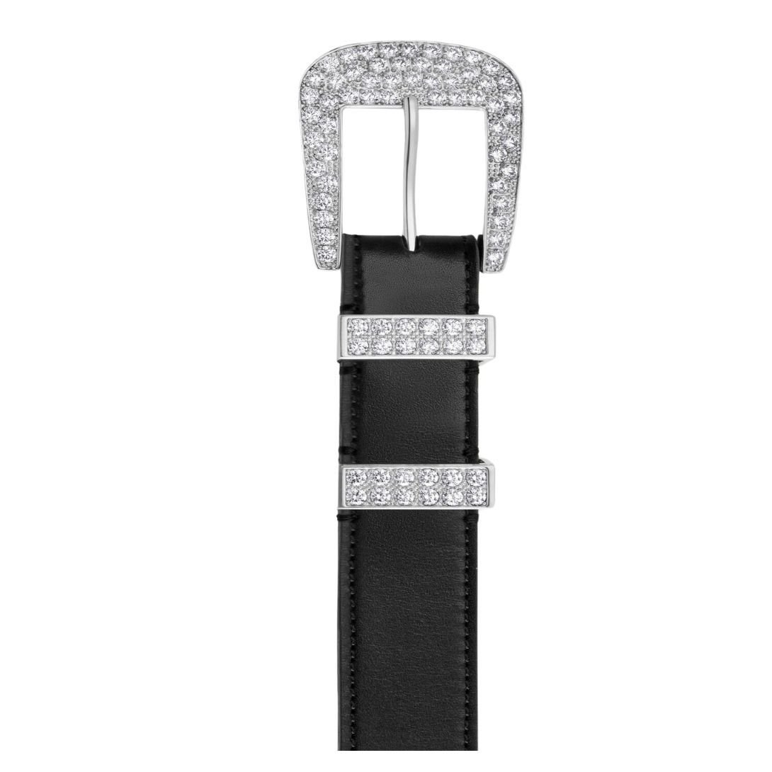 Fusing classic craftsmanship with contemporary design, this belt is a refined expression of opulence and style, perfect for elevating any wardrobe with a hint of sparkle.