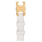 Crafted from high-quality Taurillon leather, this Celine Medium Triomphe Belt in Taurillon Leather White is made of 100% calfskin, ensuring durability, softness, and a refined texture. The luxurious material provides a smooth and supple feel, making it a sophisticated wardrobe essential.