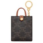 This miniature charm bag is crafted from Triomphe Canvas with calfskin trimmings, exuding a sophisticated and timeless aesthetic. The gold finishing adds a refined touch, making it a stylish accessory that complements any look.