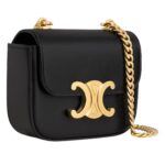 This exquisitely crafted handbag combines luxury and functionality, making it a perfect accessory for any occasion. The premium calfskin leather exterior is complemented by a soft calfskin lining, ensuring durability and a refined touch. Gold-tone accents enhance the bag’s elegance, while the Triomphe metallic snap button adds a distinctive signature detail. Designed for versatility, this bag can be worn across the body or over the shoulder, thanks to its sleek chain strap with a 22-inch (55 cm) drop. Its compact yet practical structure features a spacious main compartment and an inner flat pocket, offering convenient storage for daily essentials. Whether for a casual outing or an elegant event, this bag is a timeless addition to any wardrobe.