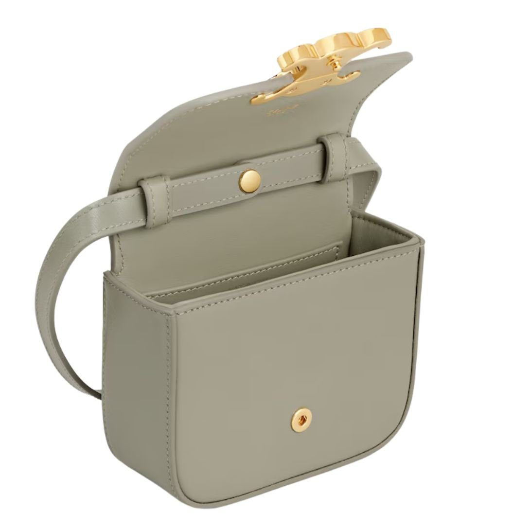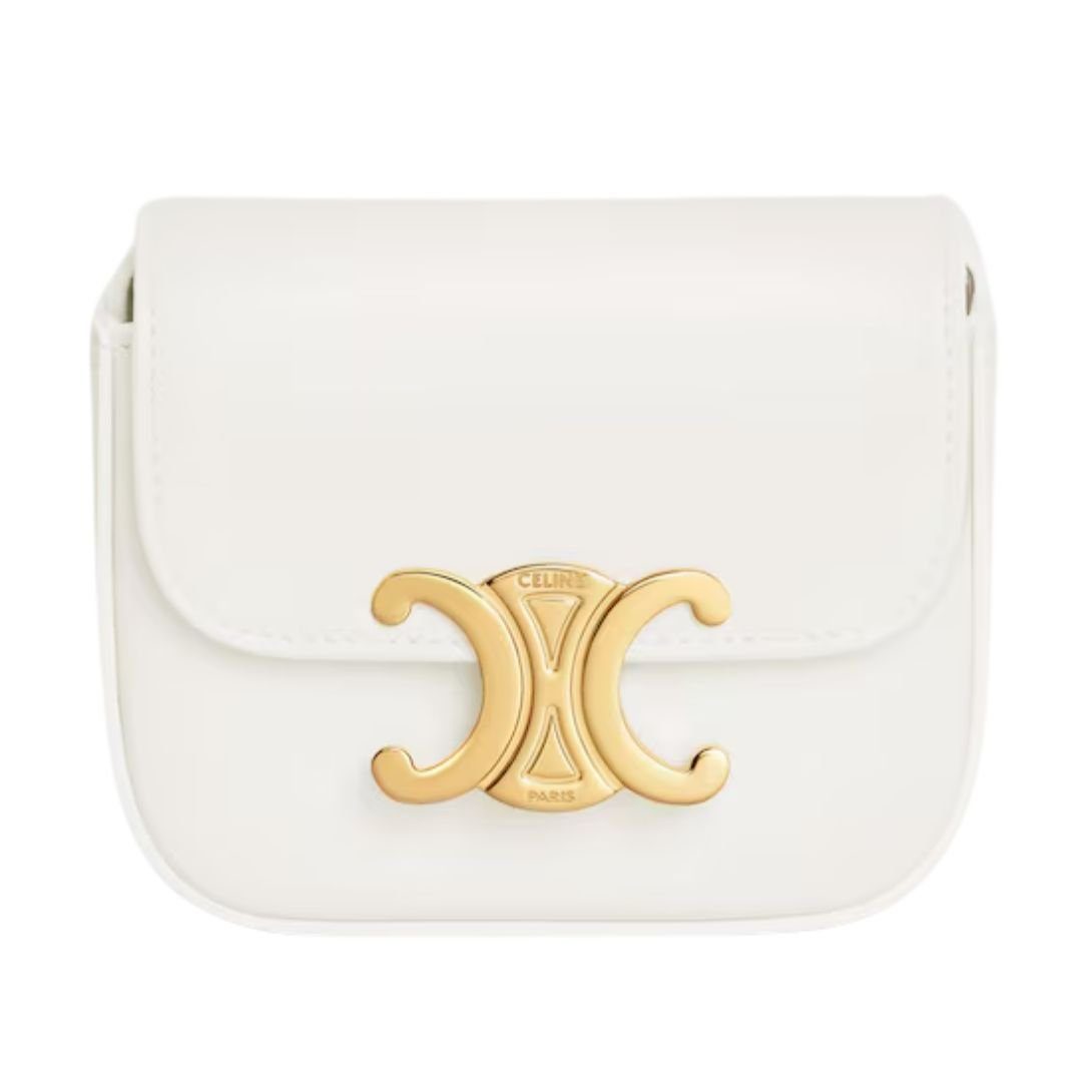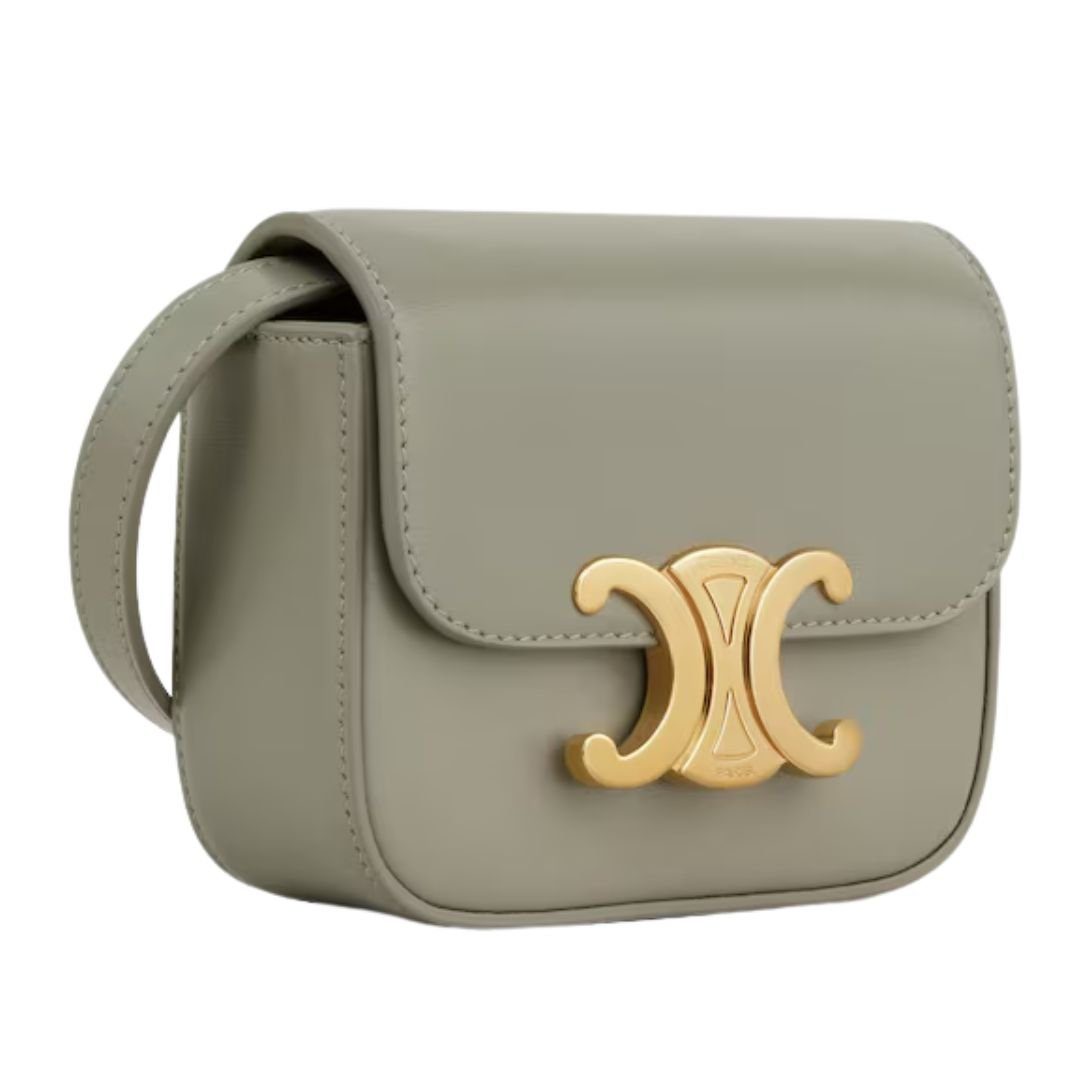 This sophisticated bag is crafted from high-quality calfskin, exuding timeless elegance. The gold-finished accents add a luxurious touch, while the Triomphe metallic snap button closure ensures security with style. Designed for maximum versatility, it can be carried by hand, over the shoulder, or as a cross-body bag. The adjustable and removable strap allows for a customized fit, attaching securely under the flap through leather loops. With a spacious main compartment and inner flat pocket, this bag combines practicality with refined aesthetics, making it an ideal companion for any occasion.