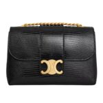 This exquisite handbag combines luxury and practicality, crafted from premium lizard leather with a lambskin-lined interior. The gold-finished details and Triomphe snap button closure enhance its elegance, making it a timeless piece for any wardrobe.