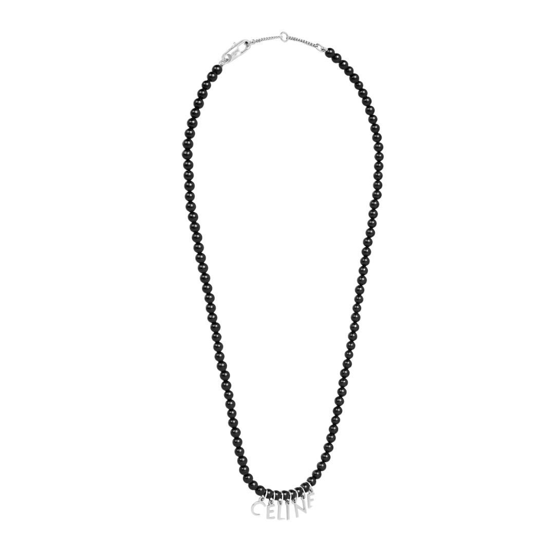 CELINE MONOCHROMS BEADS NECKLACE IN ONYX AND BRASS WITH RHODIUM FINISH