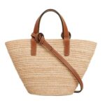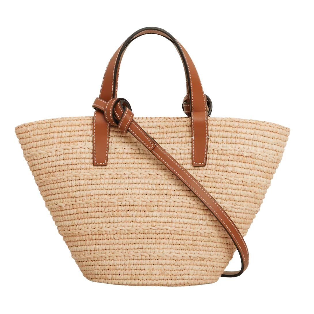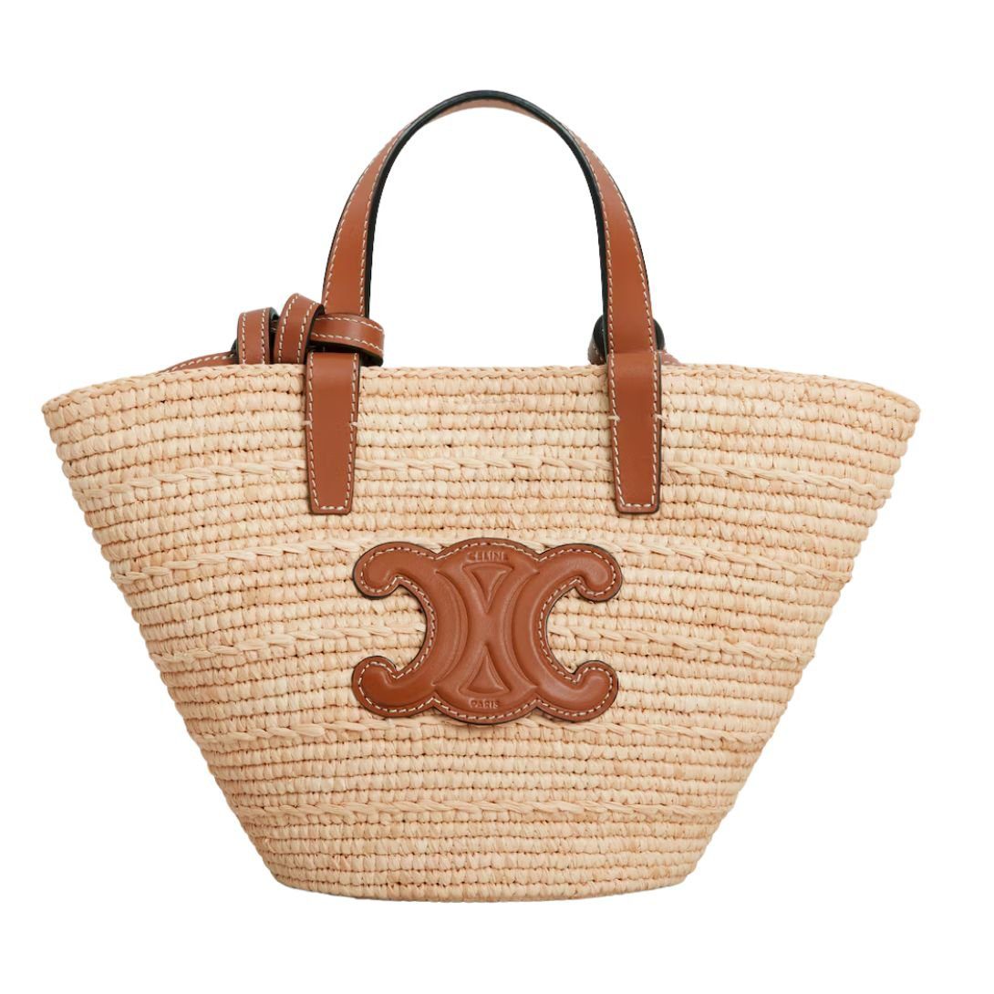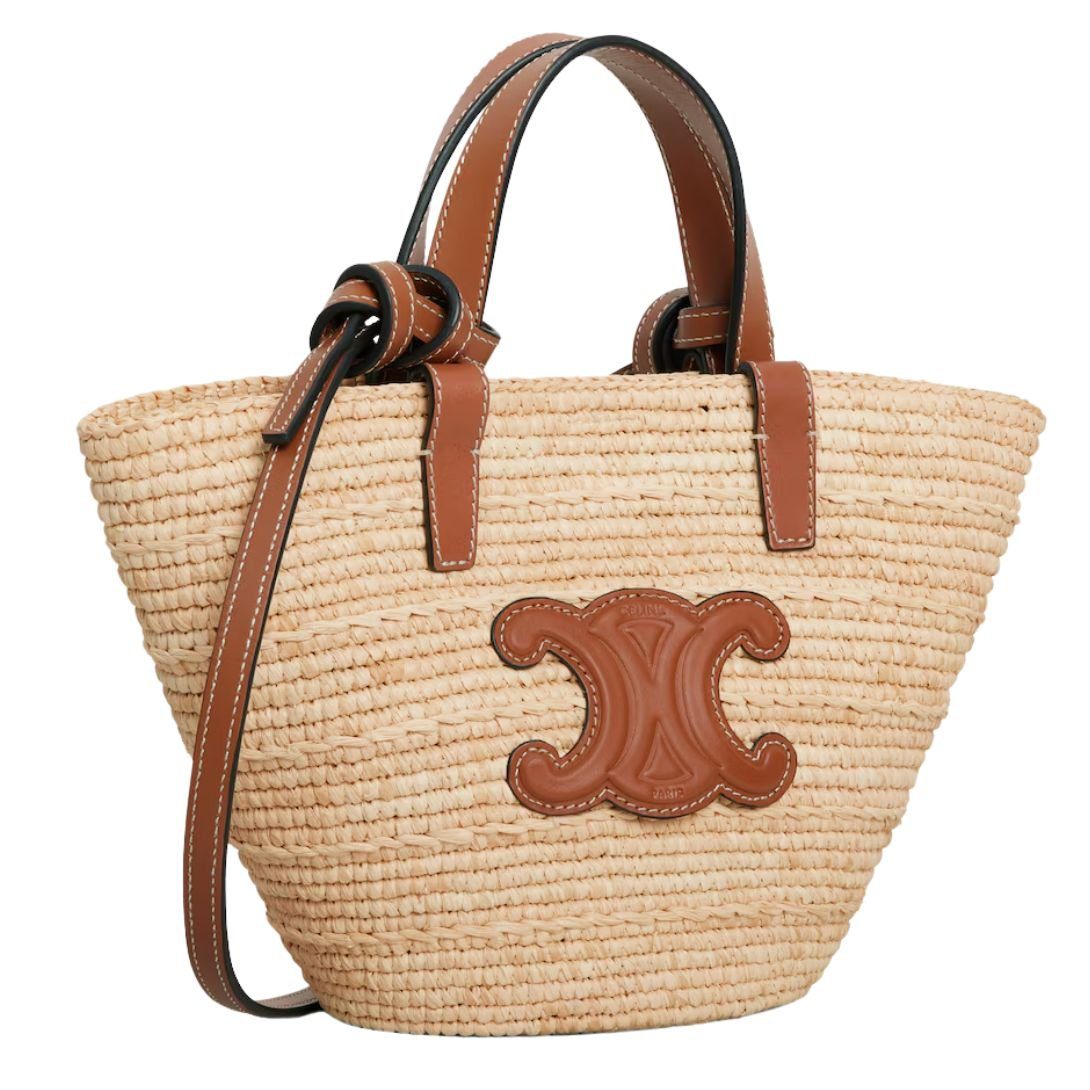 CELINE NANO SUPPLE CLASSIC PANIER IN RAFFIA AND CALFSKIN