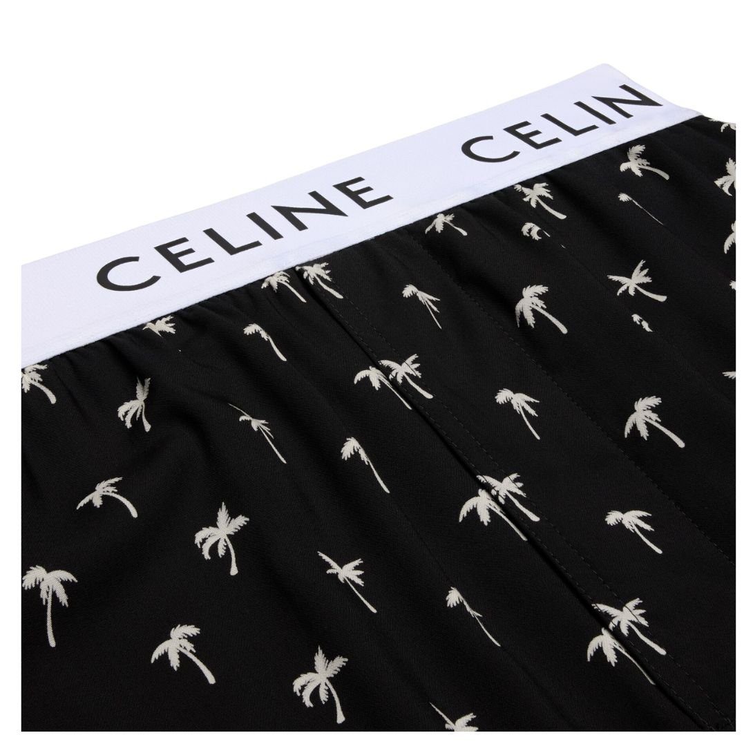 Equipped with two side pockets, these pants provide practicality without compromising on aesthetics. The CELINE print on the elasticated waistband adds a bold signature touch, enhancing the overall design.