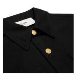 The shirt collar enhances the structured elegance of the piece, while two patch pockets with flaps on the chest and two additional patch pockets provide both style and practicality.