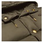 - Features a high collar with an adjustable drawstring, providing extra coverage and protection from the elements.