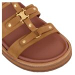 Featuring large straps with studs and a gold finishing Triomphe signature, these mules make a bold statement while maintaining timeless sophistication. The slip-on design ensures effortless wear.