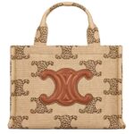 CELINE SMALL CABAS THAIS IN RAFFIA EFFECT TEXTILE WITH LEOPARD TRIOMPHE