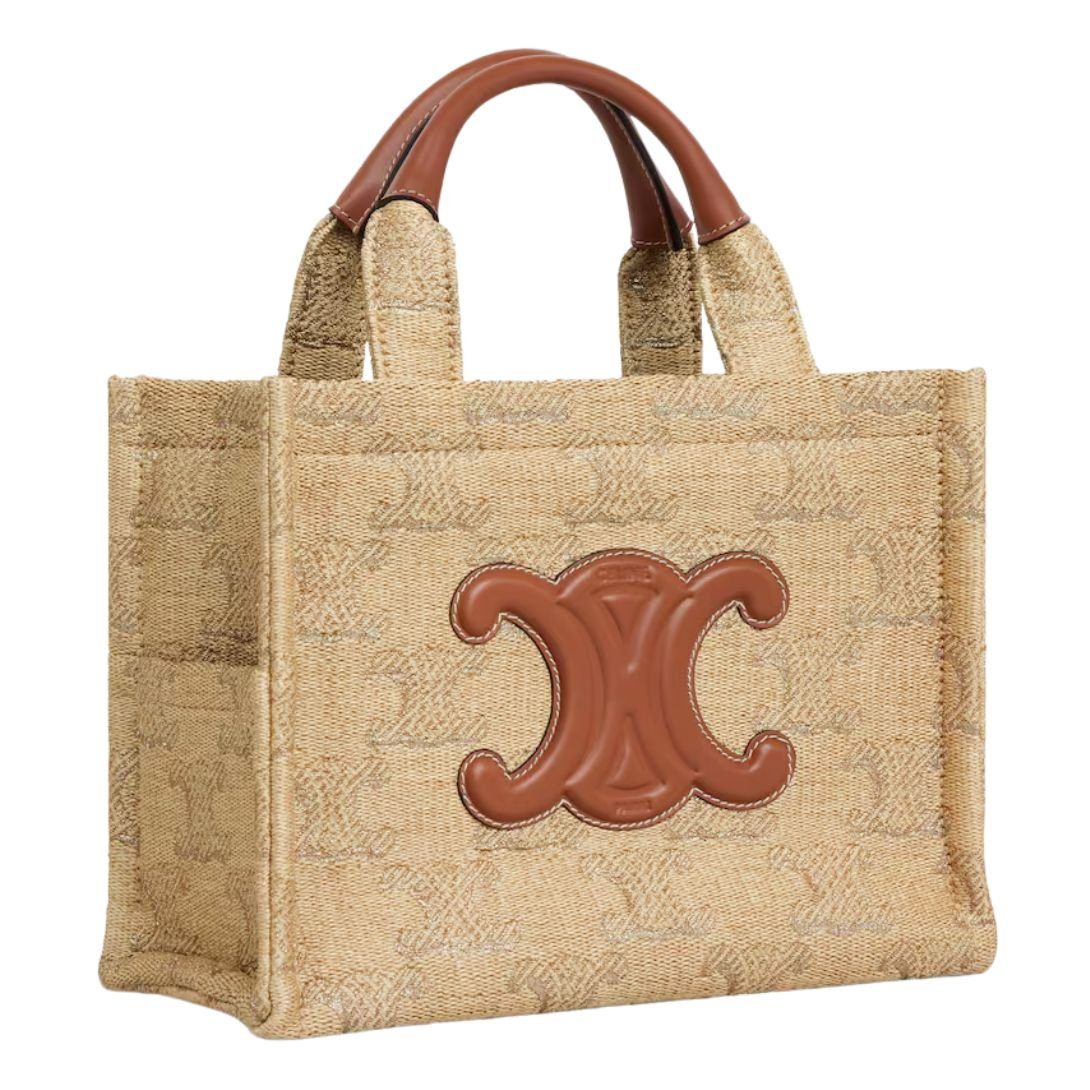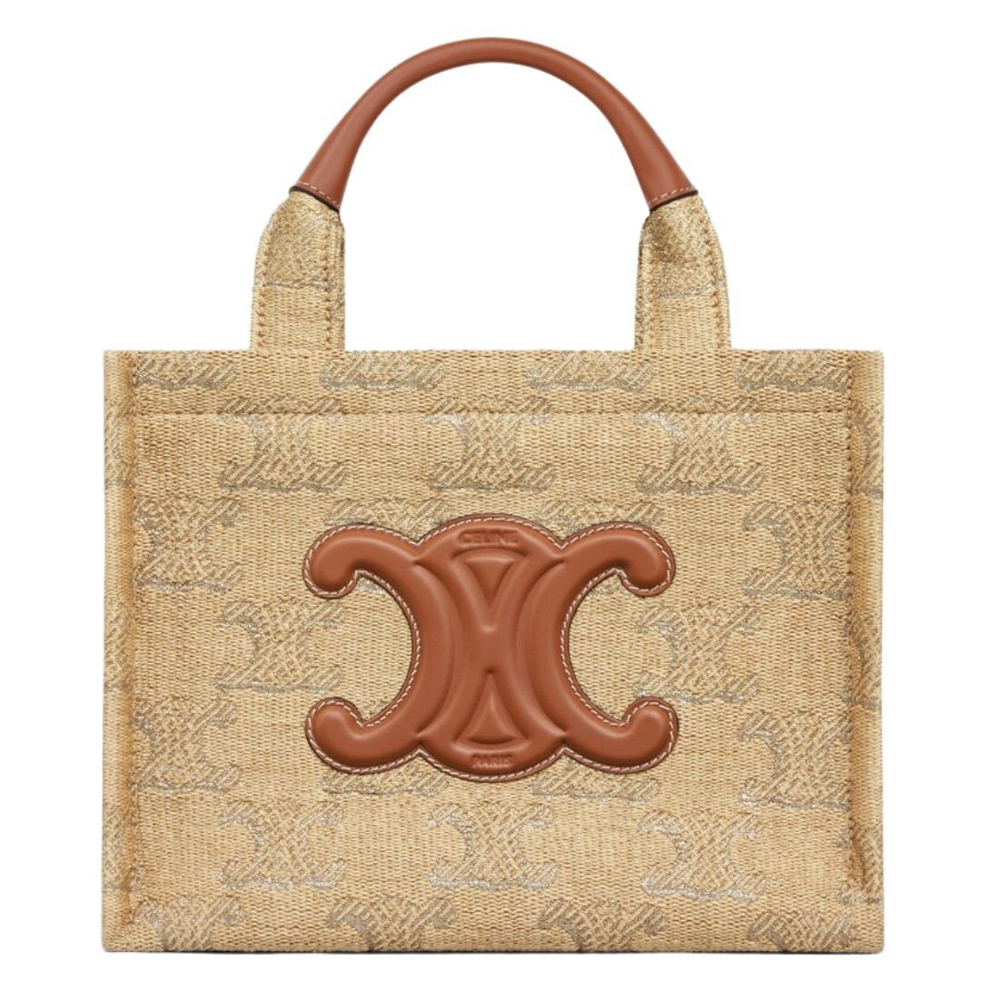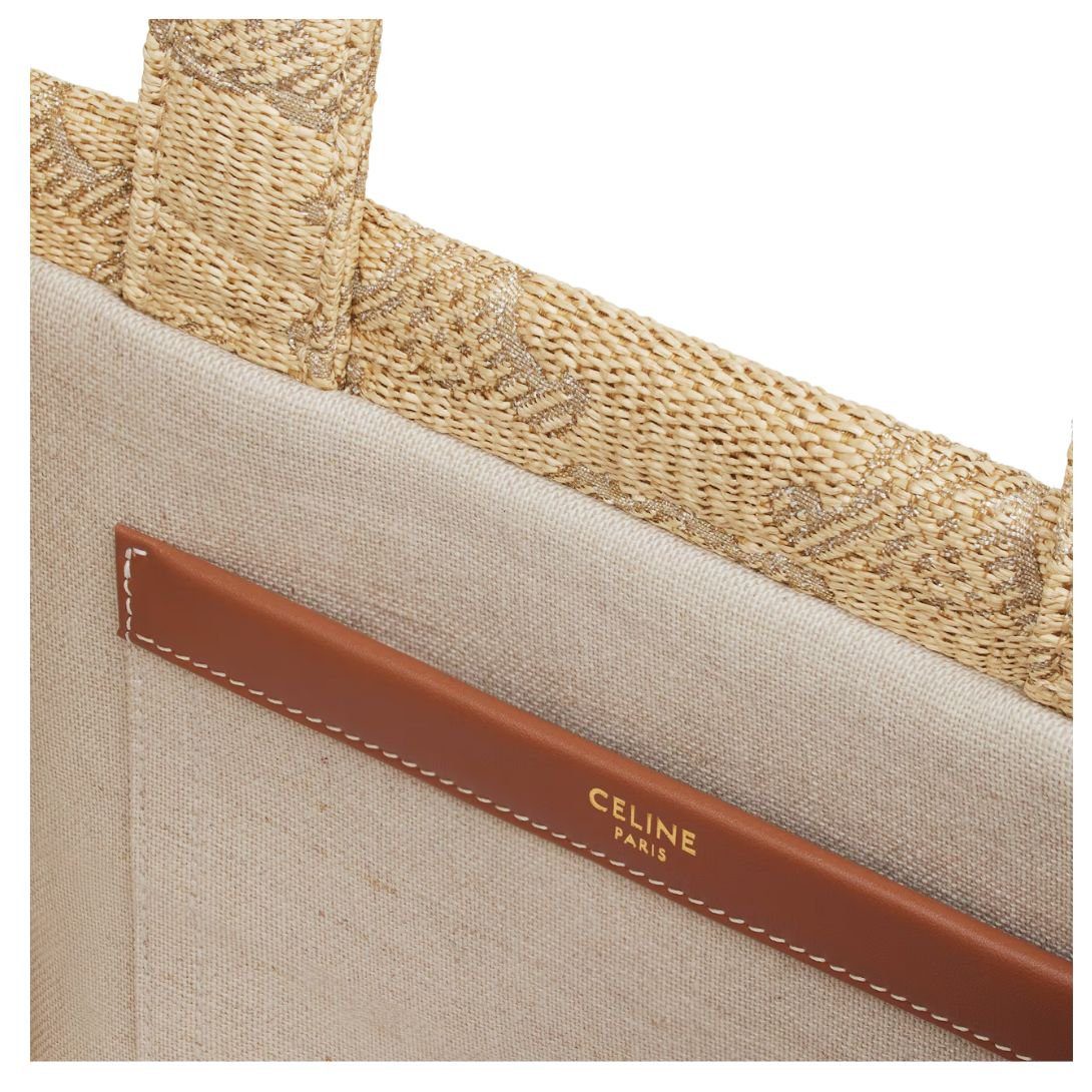 CELINE SMALL CABAS THAIS IN RAFFIA EFFECT TEXTILE WITH TRIOMPHE JACQUARD