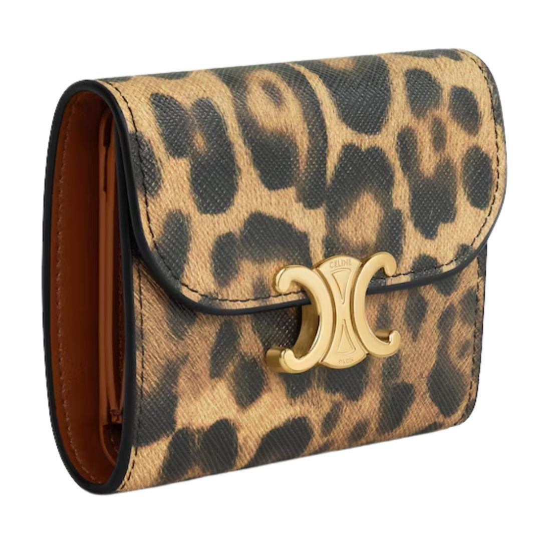 Home WOMEN CELINE SMALL LEATHER GOODS CELINE SMALL FLAP WALLET TRIOMPHE IN CANVAS WITH LEOPARD PRINT