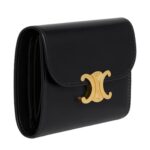 CELINE SMALL FLAP WALLET TRIOMPHE IN SHINY CALFSKIN BLACK