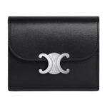 Accentuated with gold finishing, this wallet radiates timeless charm. The Triomphe metallic snap button closure adds a distinctive touch, securing your essentials while enhancing its luxurious appeal.