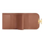 Made from high-quality calfskin leather, this Celine Small Flap Wallet Triomphe in Shiny Calfskin Bronze offers a refined texture that ensures durability while exuding sophistication. The calfskin lining enhances its luxurious feel, providing a seamless blend of style and resilience.