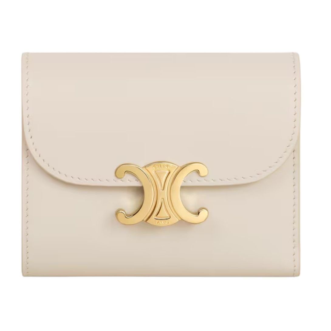 CELINE SMALL FLAP WALLET TRIOMPHE IN SHINY CALFSKIN PALE BEIGE