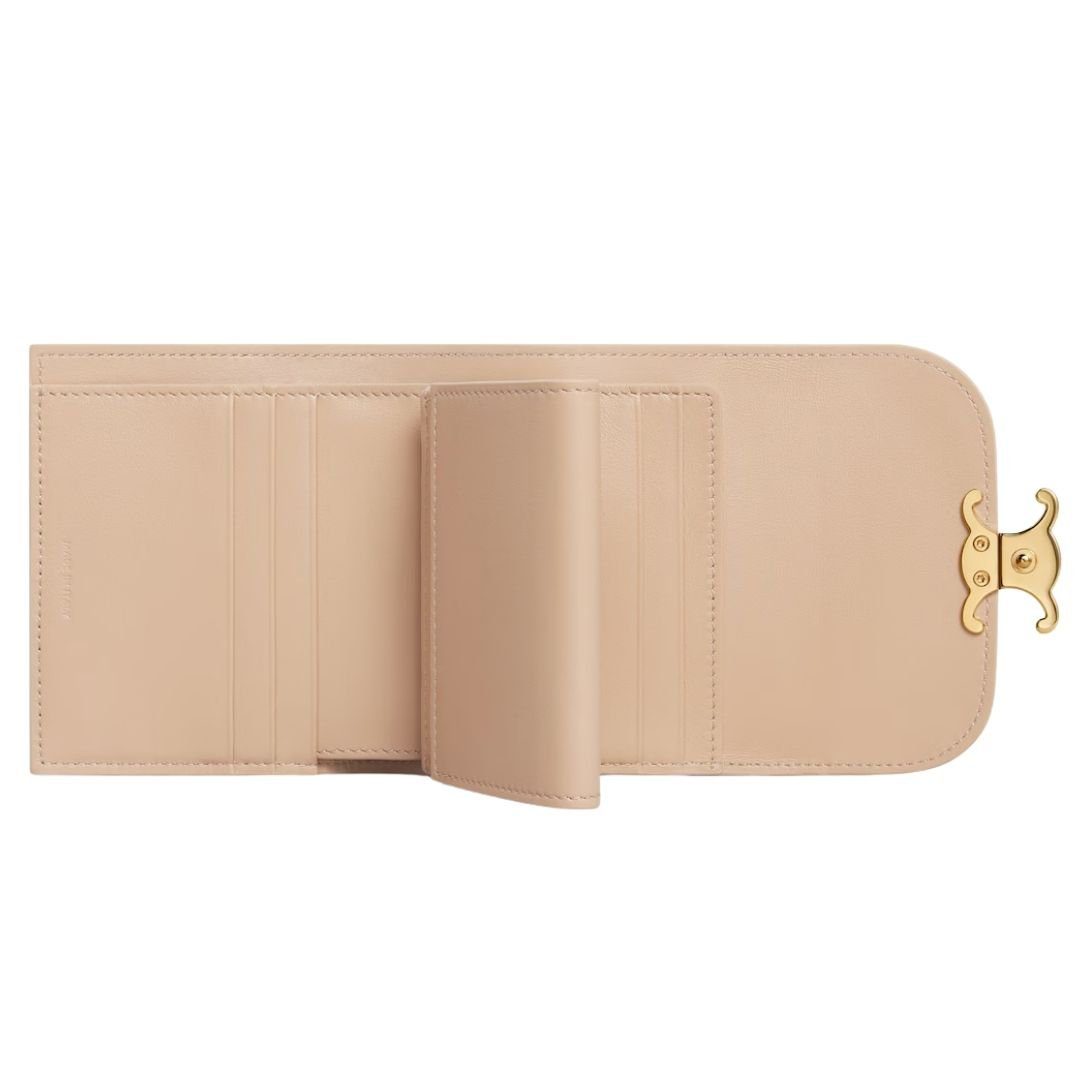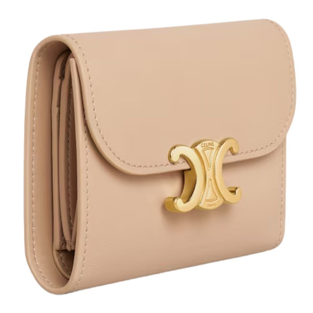 CELINE SMALL FLAP WALLET TRIOMPHE IN SHINY CALFSKIN OAT BEIGE