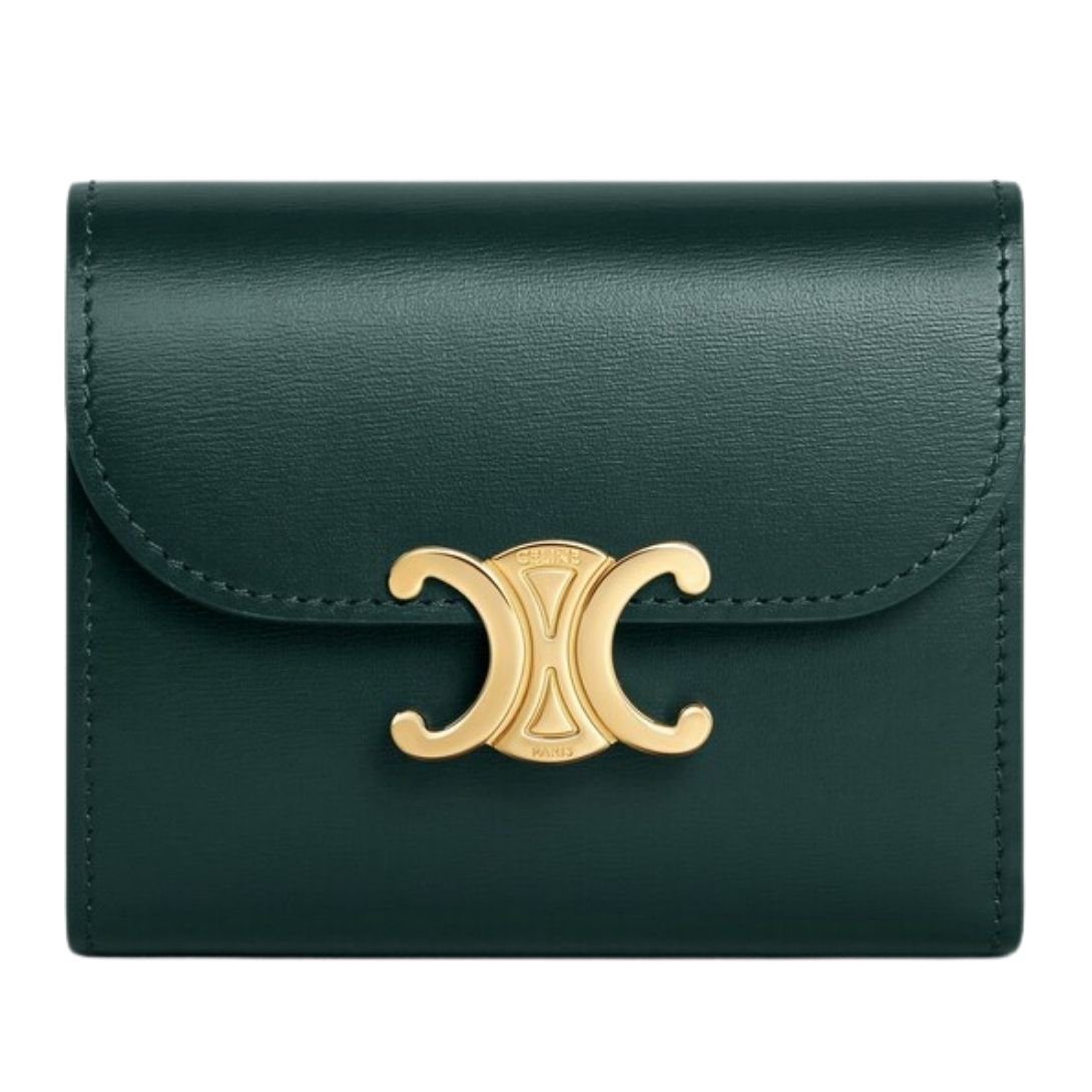 CELINE SMALL FLAP WALLET TRIOMPHE IN SHINY CALFSKIN BLACK