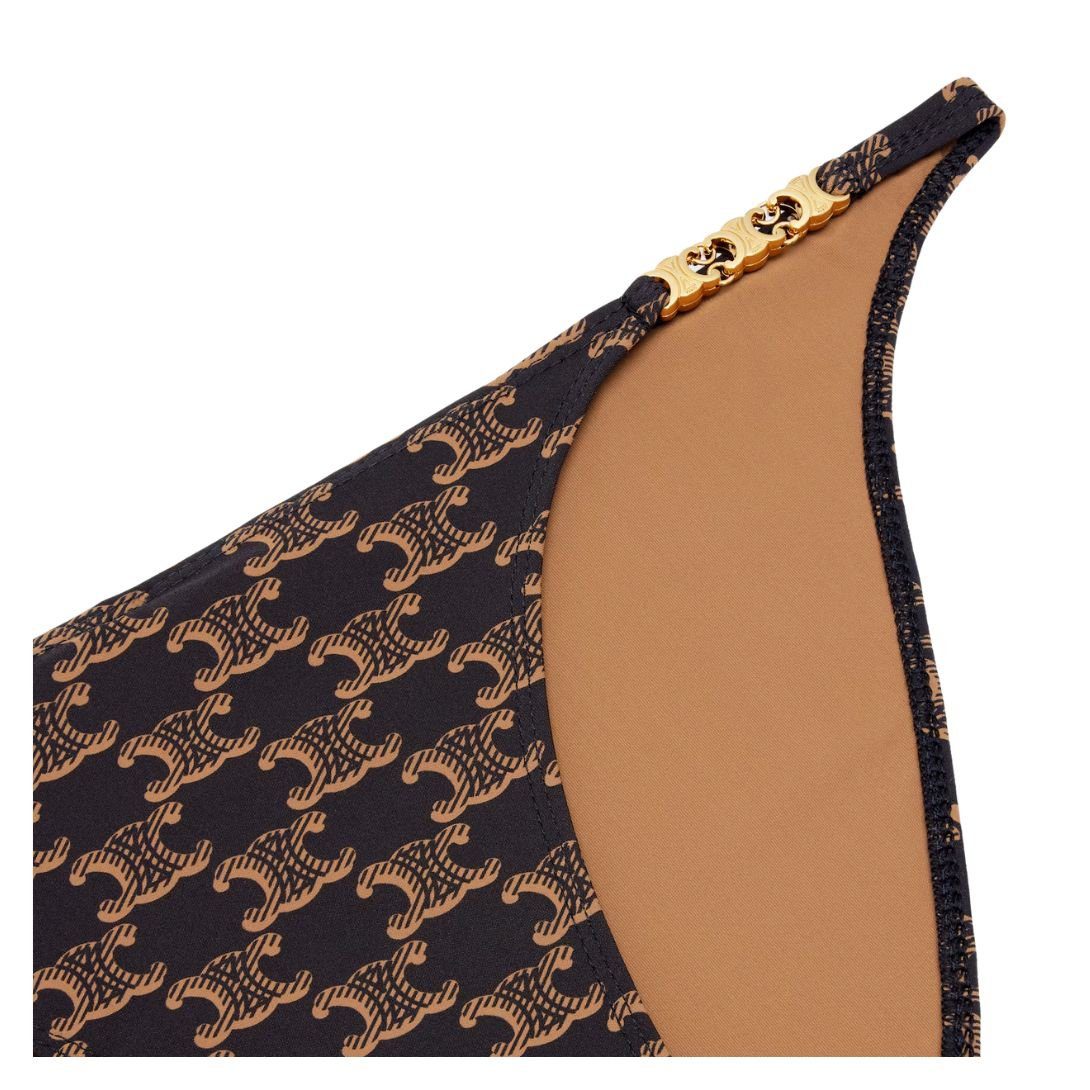 Crafted from a 62% polyamide and 32% elastane blend, this Celine Swimsuit Bottom in Monogram Jersey offers exceptional flexibility, durability, and a smooth, second-skin feel. The lining, made of 76% polyamide and 24% elastane, provides added comfort and support for a luxurious wearing experience.