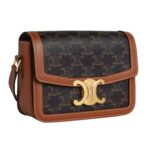 Home WOMEN CELINE WOMEN HANDBAGS CELINE TEEN TRIOMPHE BAG IN CANVAS AND CALFSKIN TAN
