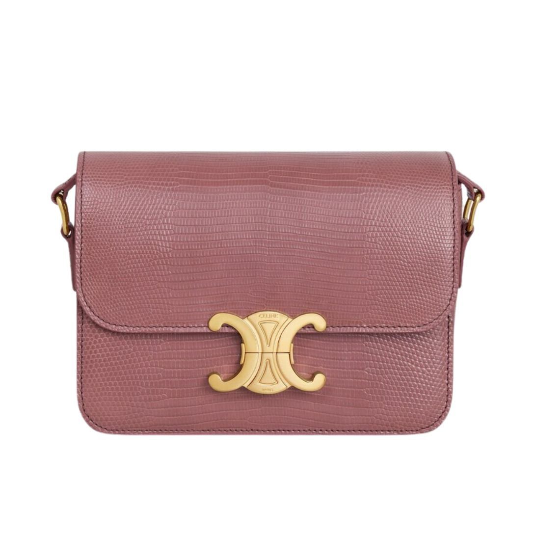 CELINE TEEN TRIOMPHE BAG IN LIZARD VINTAGE ROSE