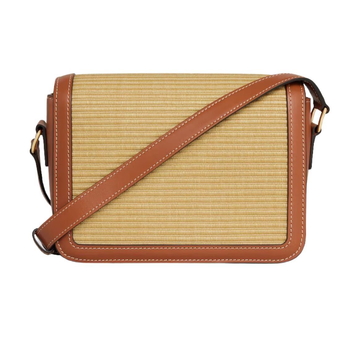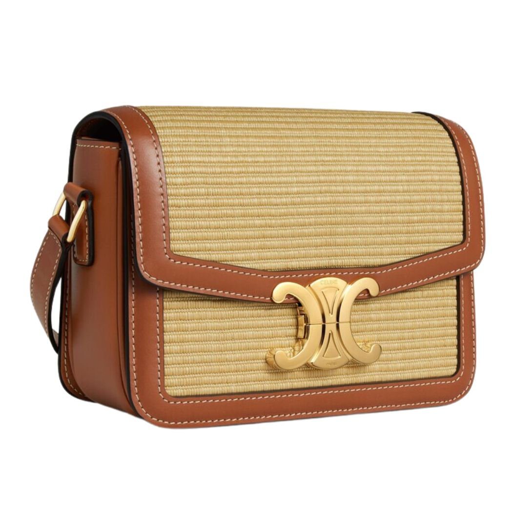 CELINE TEEN TRIOMPHE BAG IN RAFFIA EFFECT TEXTILE AND CALFSKIN