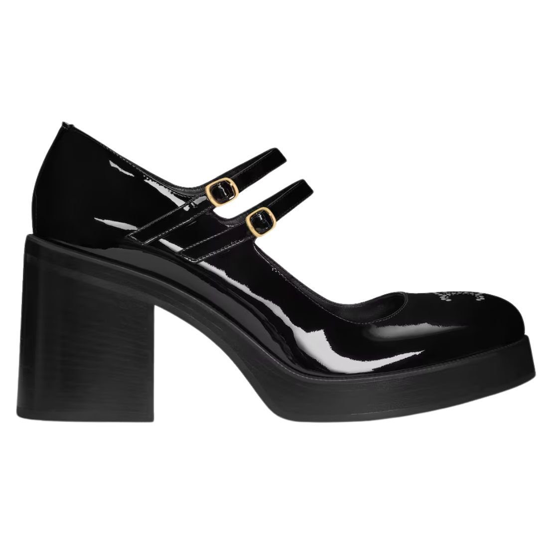 Featuring a round toe shape, these shoes boast a classic yet sophisticated silhouette. The Triomphe perforation on the apron adds a distinctive touch, while the adjustable buckles with engraved Triomphe enhance both style and functionality.