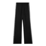 The contrasting side bands enhance the design with a dynamic, modern look, adding a sporty yet sophisticated element to the pants.