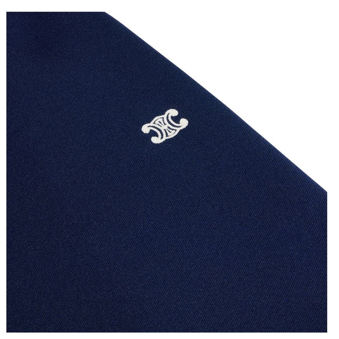 Equipped with two side pockets, these pants offer convenient storage without compromising on style. The Triomphe embroidery adds a refined touch, elevating the design with CELINE’s signature aesthetic.