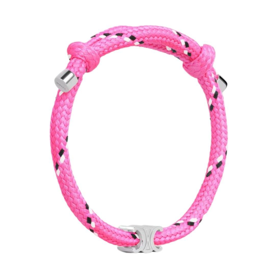 Home MEN CELINE MEN JEWELLERY CELINE TRIOMPHE BEACH BRACELET IN POLYESTER AND BRASS WITH RHODIUM FINISH