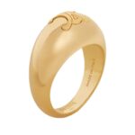 This Celine Triomphe Bold Ring in Brass with Gold Finish is a testament to refined craftsmanship and timeless elegance, designed to complement any style effortlessly.