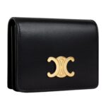 CELINE CARD HOLDER WITH FLAP TRIOMPHE IN SHINY CALFSKIN BLACK
