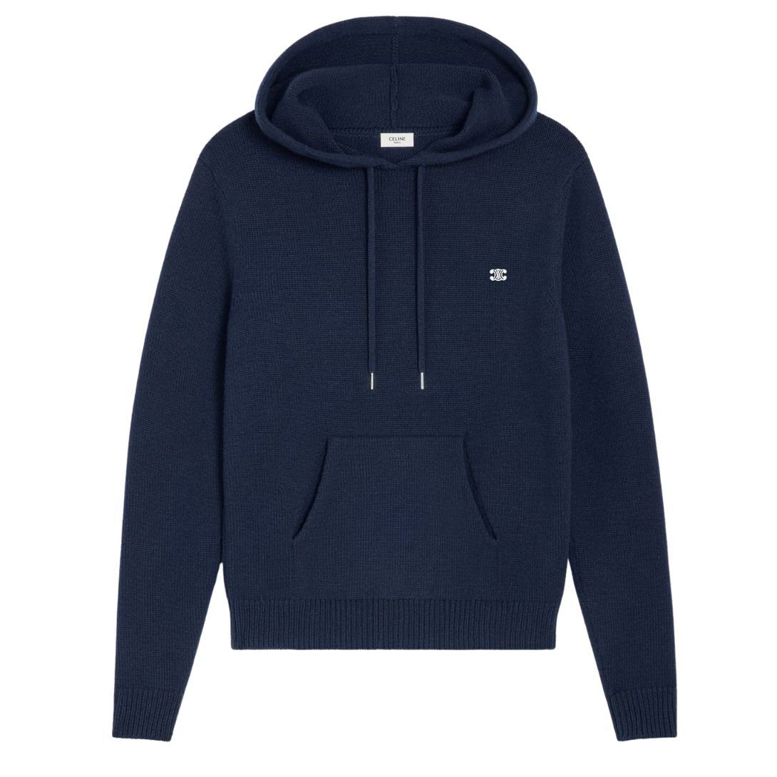 CELINE TRIOMPHE HOODED SWEATER IN CASHMERE WOOL NAVY
