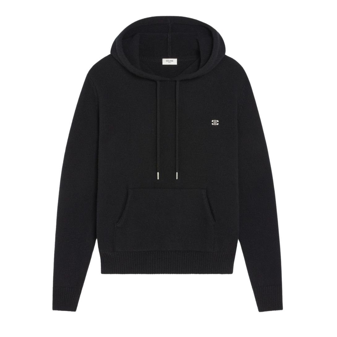 CELINE TRIOMPHE HOODED SWEATER IN CASHMERE WOOL BLACK-OFF WHITE