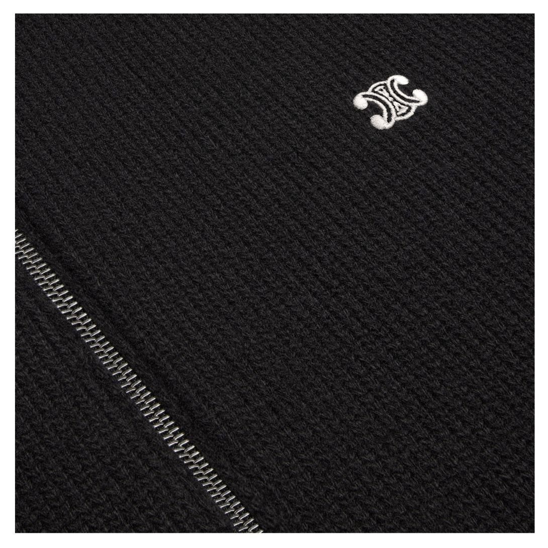 Expertly crafted from 90% wool and 10% cashmere, this Celine Triomphe Hooded Sweater in Wool and Cashmere Black-Off White offers exceptional warmth, softness, and durability. The wool ensures breathability and insulation, while the cashmere adds a luxurious, smooth feel.